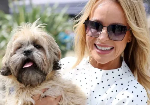 Amanda Holden has been spotted in her most demure look yet on a visit to meet Queen Camilla in a Royal-approved print